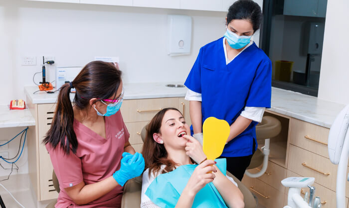 We provide professional whitening options performed by a registered dentist. Take-home treatment is available for $399, while in-chair treatment is $499. Both options are offered to new and existing patients. Terms and conditions, including eligibility and inclusions, apply. Please confirm details when booking.